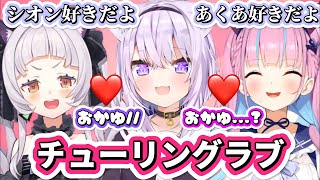 湊あくあ 猫又おかゆ 紫咲シオン ホロライブ切り抜き あくたん/シオンちゃん/おかゆんのチューリングラブを合わせてみました!! #湊あく...