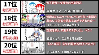 『空気読み』シリーズの実況動画のYouTubeでの再生回数ランキングをまとめました。切り抜きは除いています。1チャンネル1動画のみ。20...